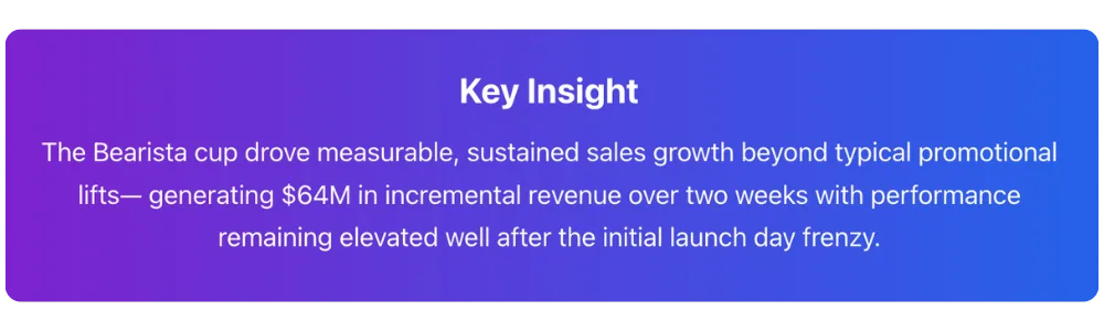But was the exclusive offer just a viral frenzy, or did it have a real-life impact on sales? Transaction data reveals the Bearista launch wasn’t just social media noise – it translated into substantial, sustained sales growth.